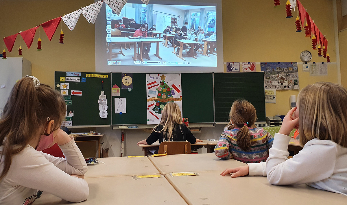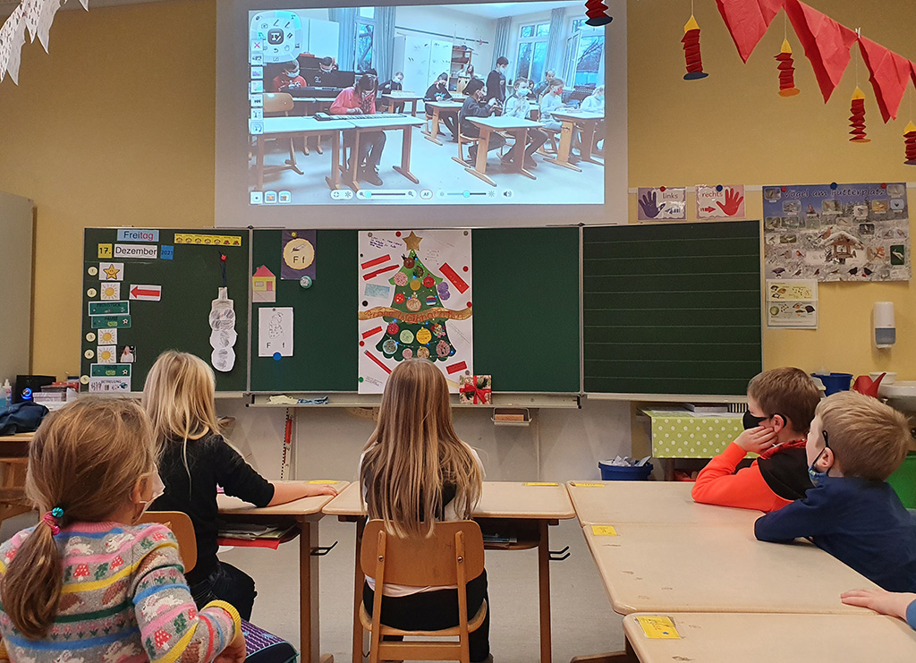 Adventliches Konzert der 4. Klasse, übertragen per Livestream in alle Klassen.
