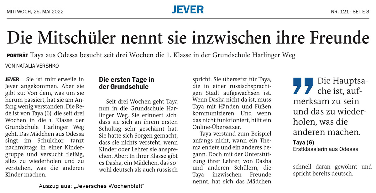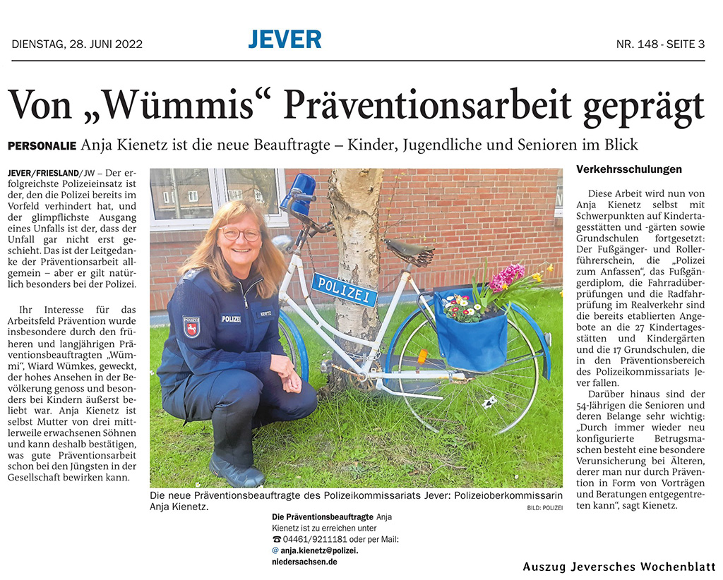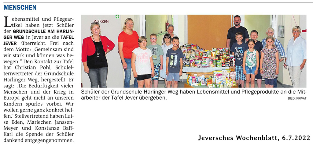 | 27.06.2022 | Bericht Jeversches WochenblattEin großes Dankeschön |