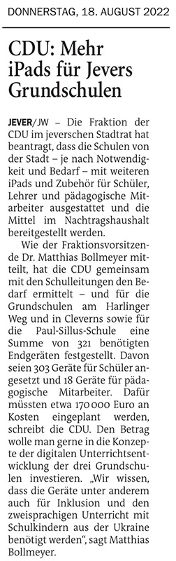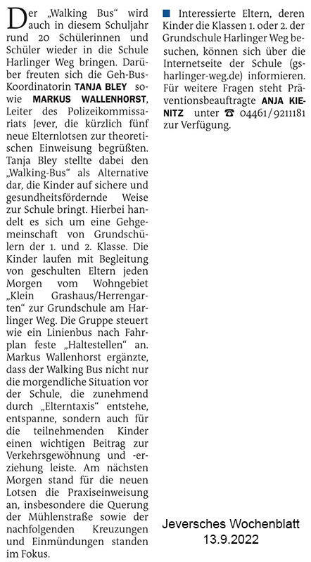 | 03.11.2022 | BerichtJeversches Wochenblatt |