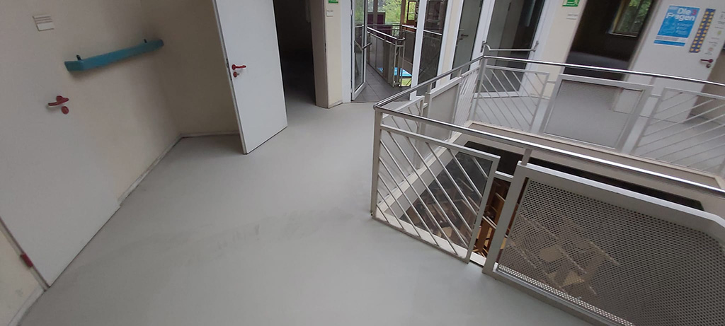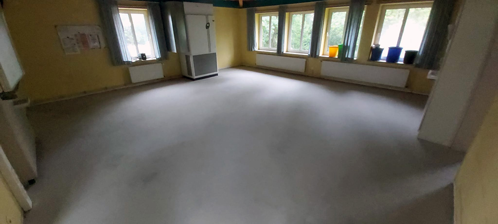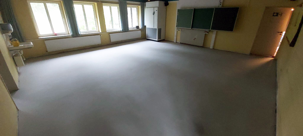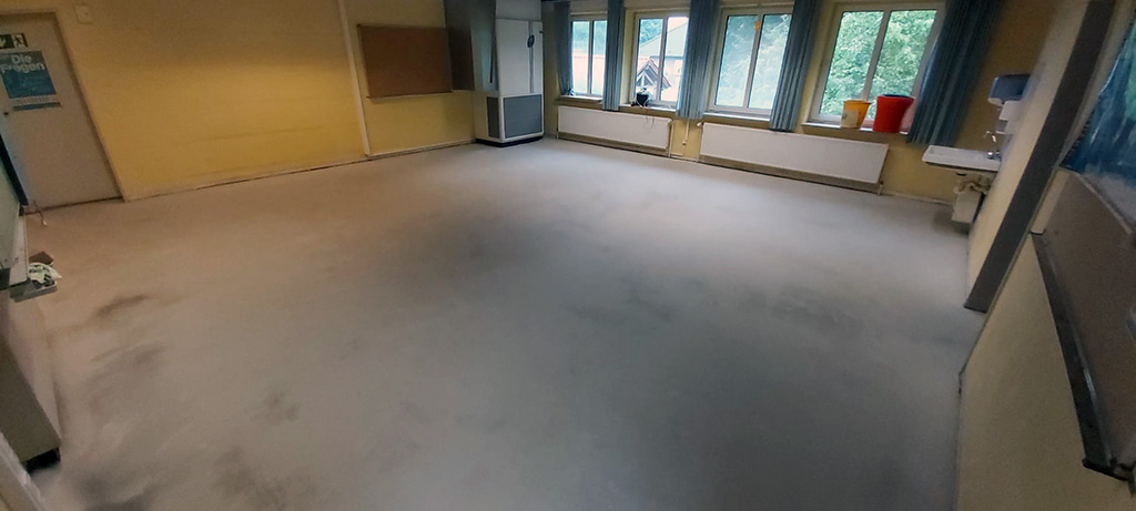 Der Boden wurde gespachtelt und muss nun trocknen!