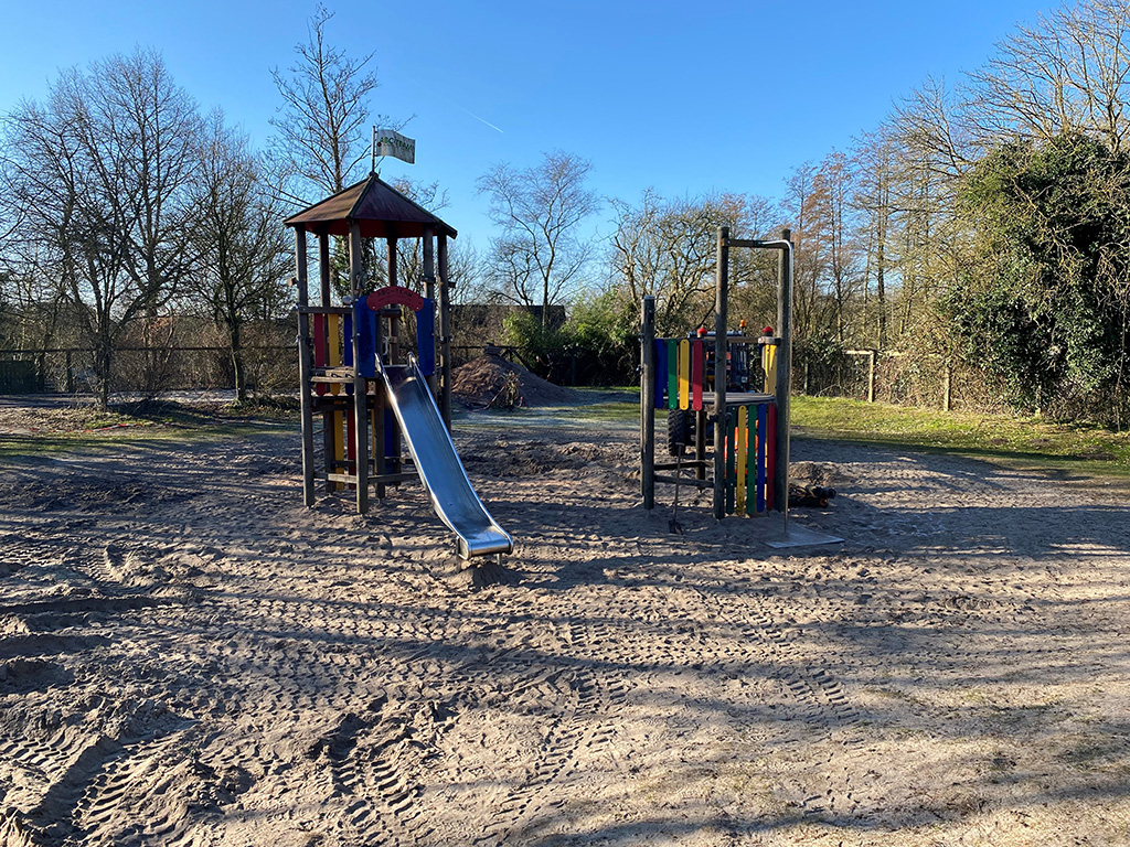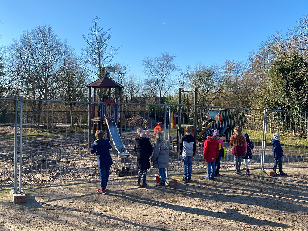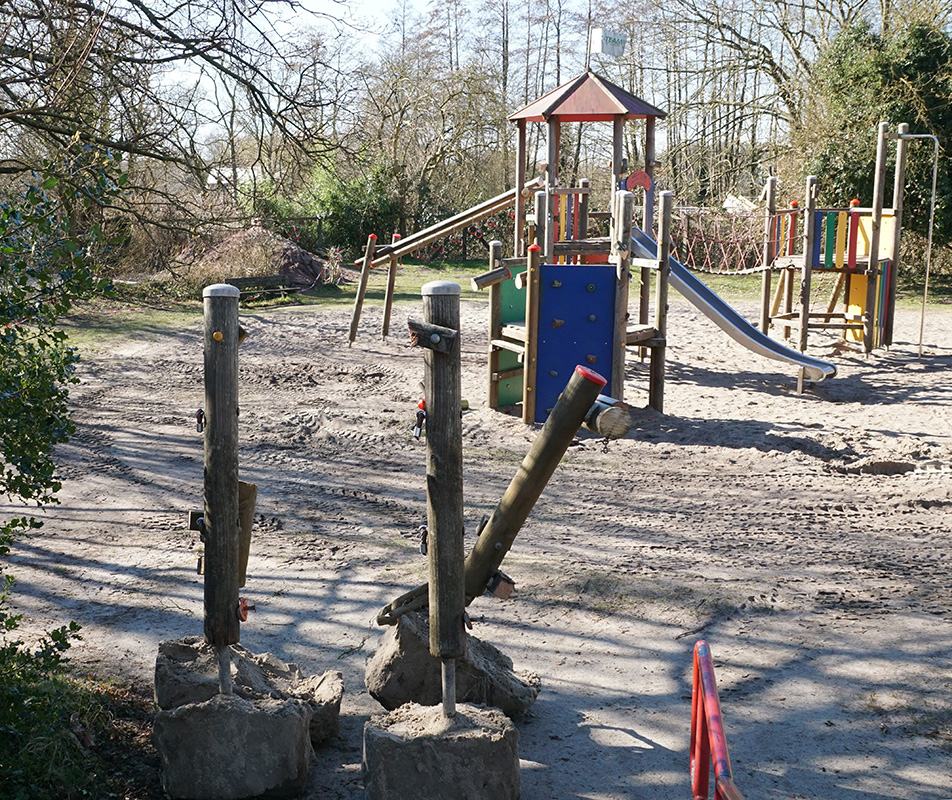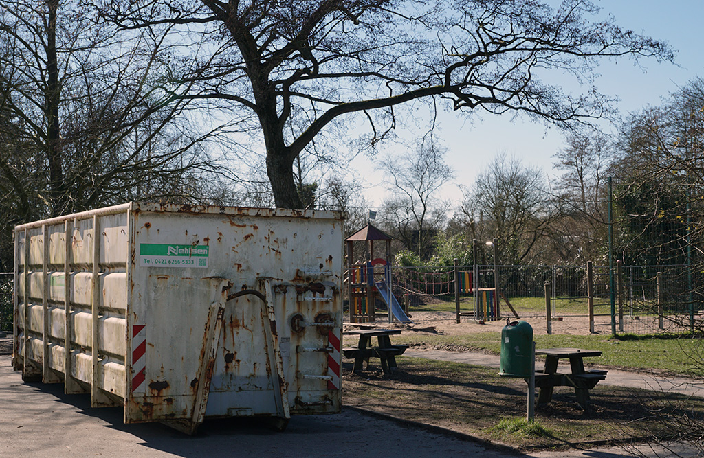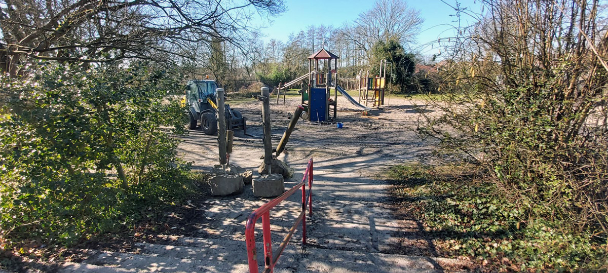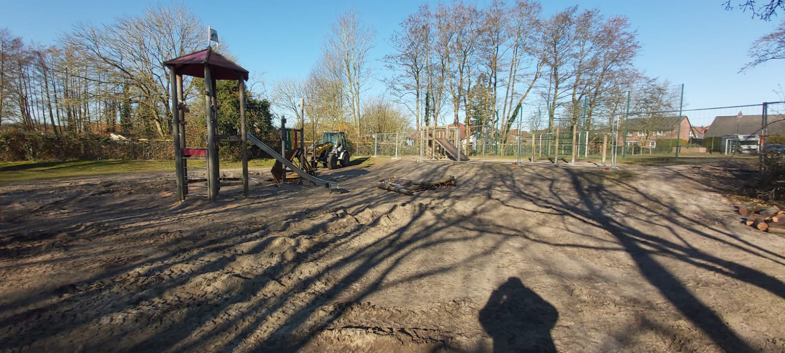 Arbeiter des Bauhofs demontieren das Spielgerüst.
