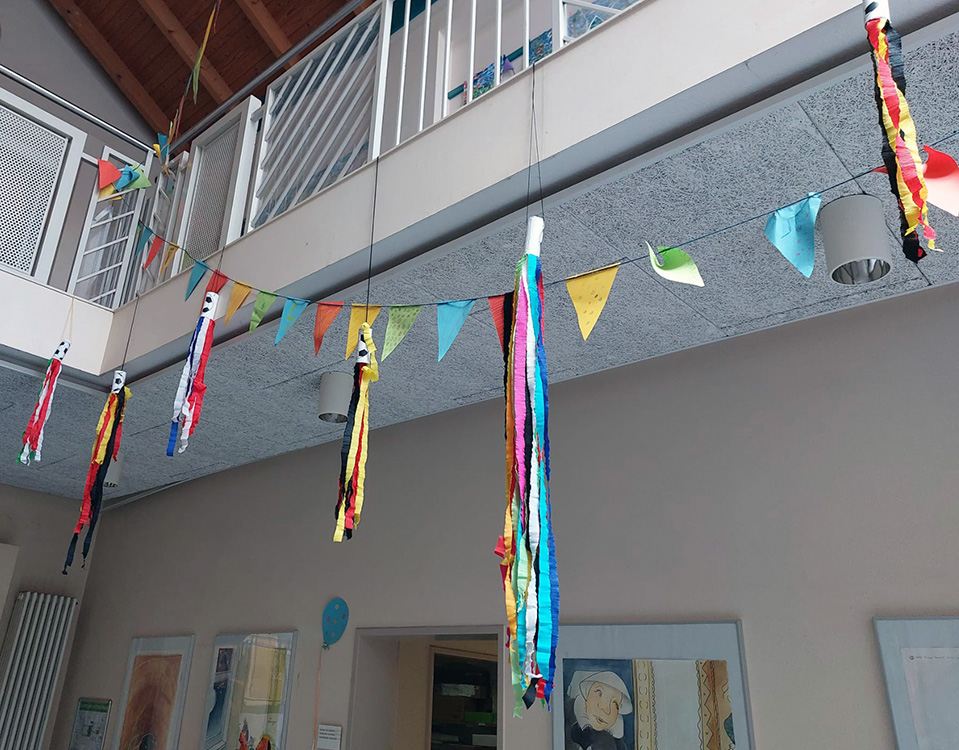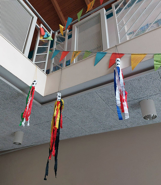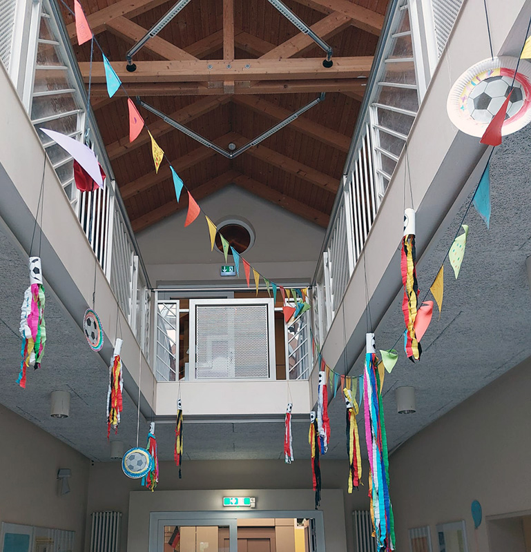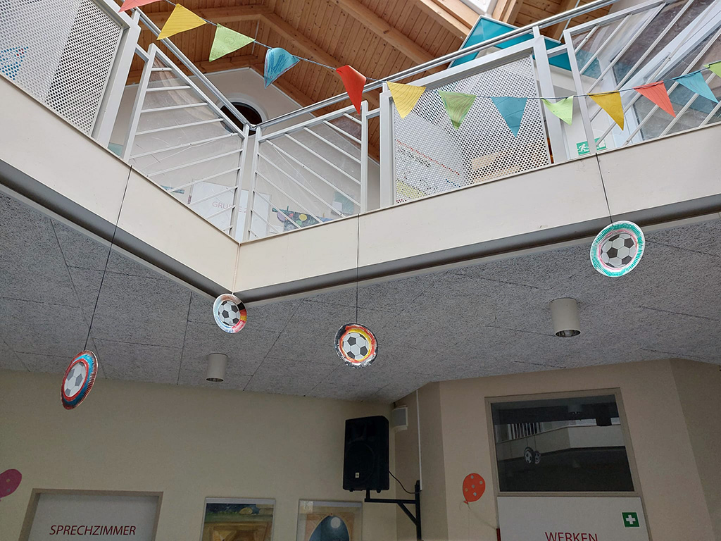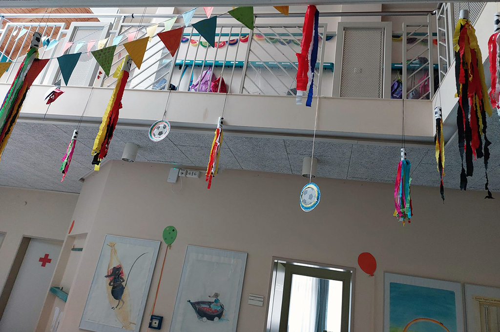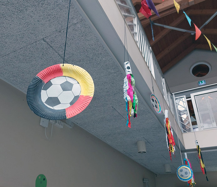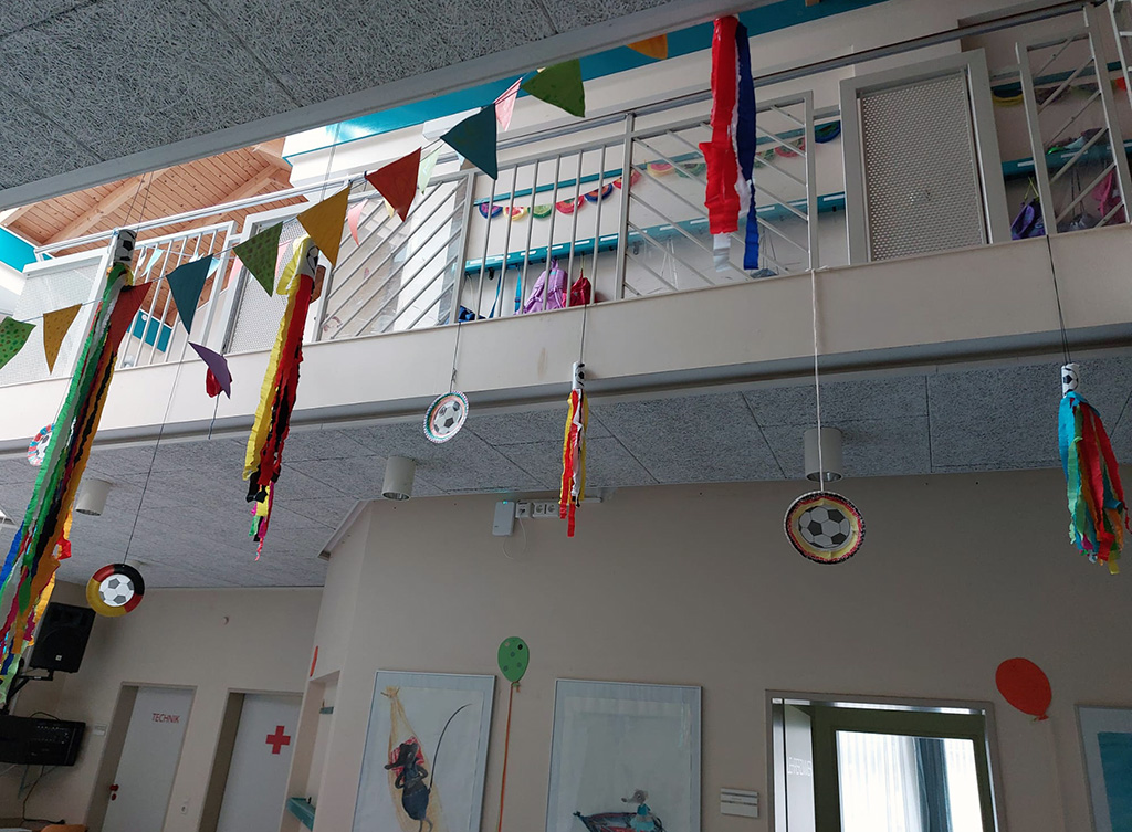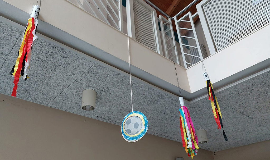 2a bastelt in der Betreuung Dekoration für die WM