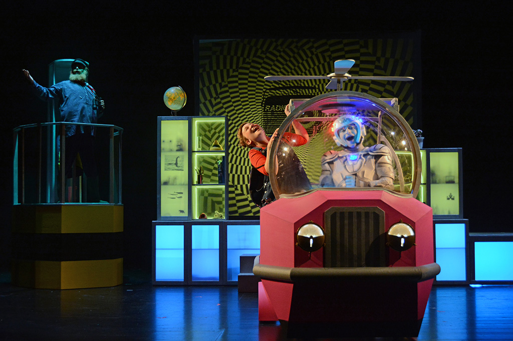 Im Fliewatüüt, das sowohl fliegen, schwimmen als auch fahren kann und das Tobbis neueste Erfindung ist,