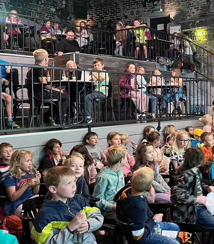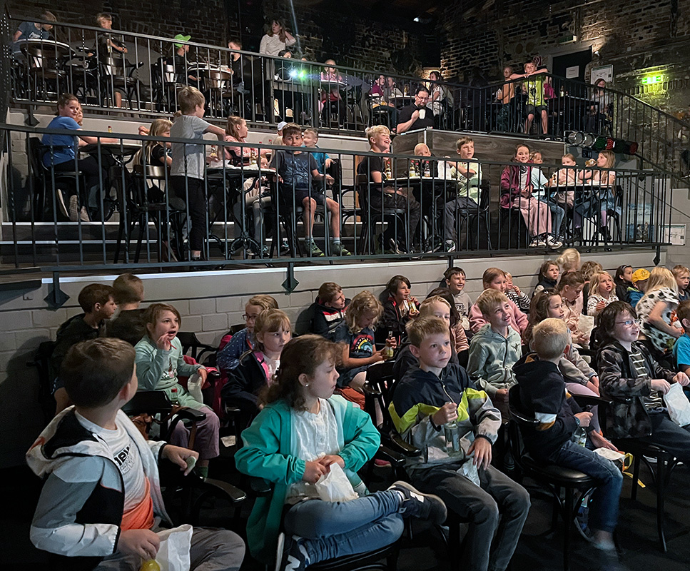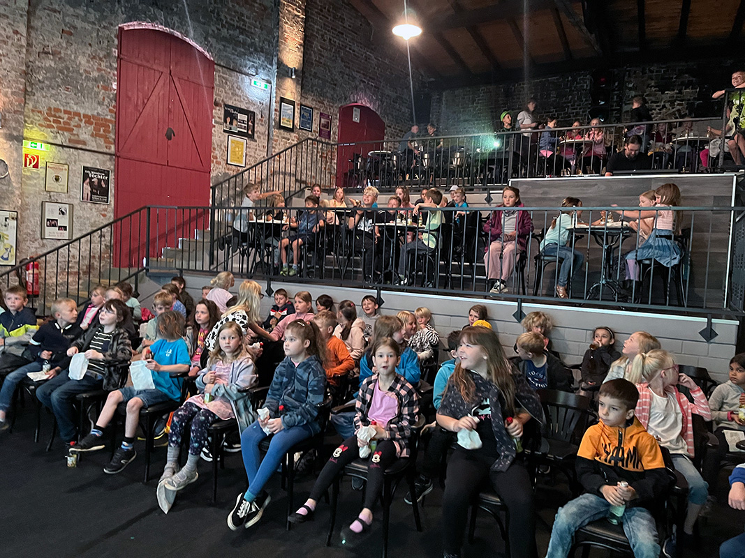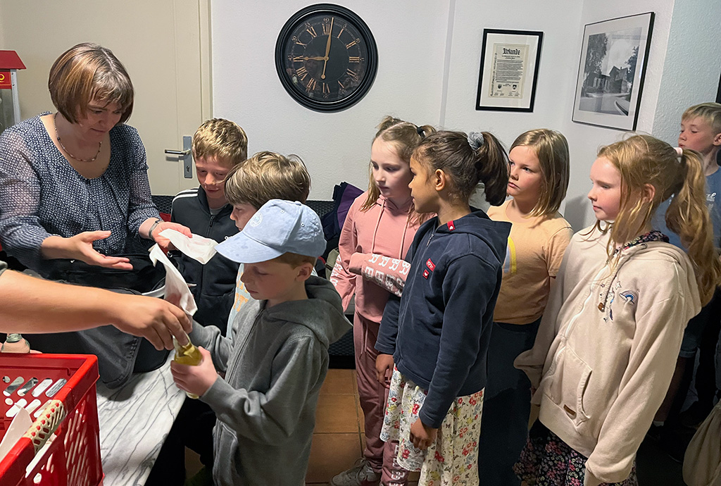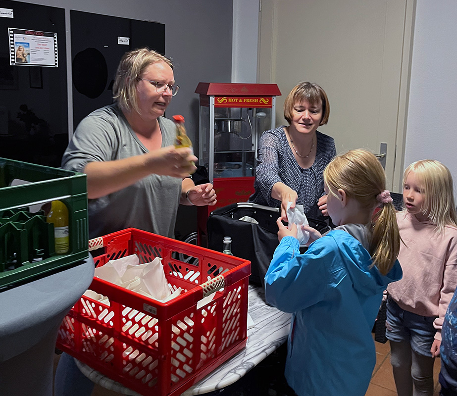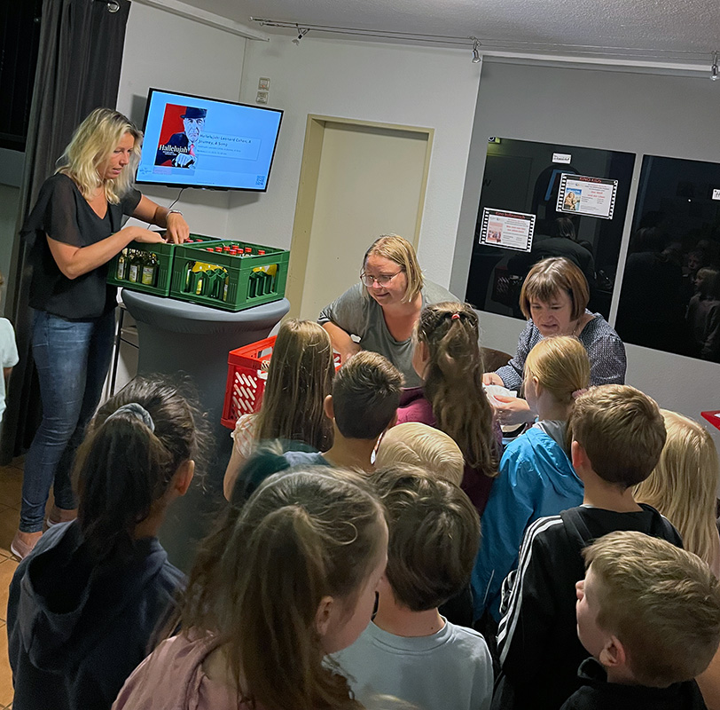 Vor dem Film bekommen die Kinder der Klassen 1 und 2 ein Getränk und eine Schlickertüte vom Förderverein. |