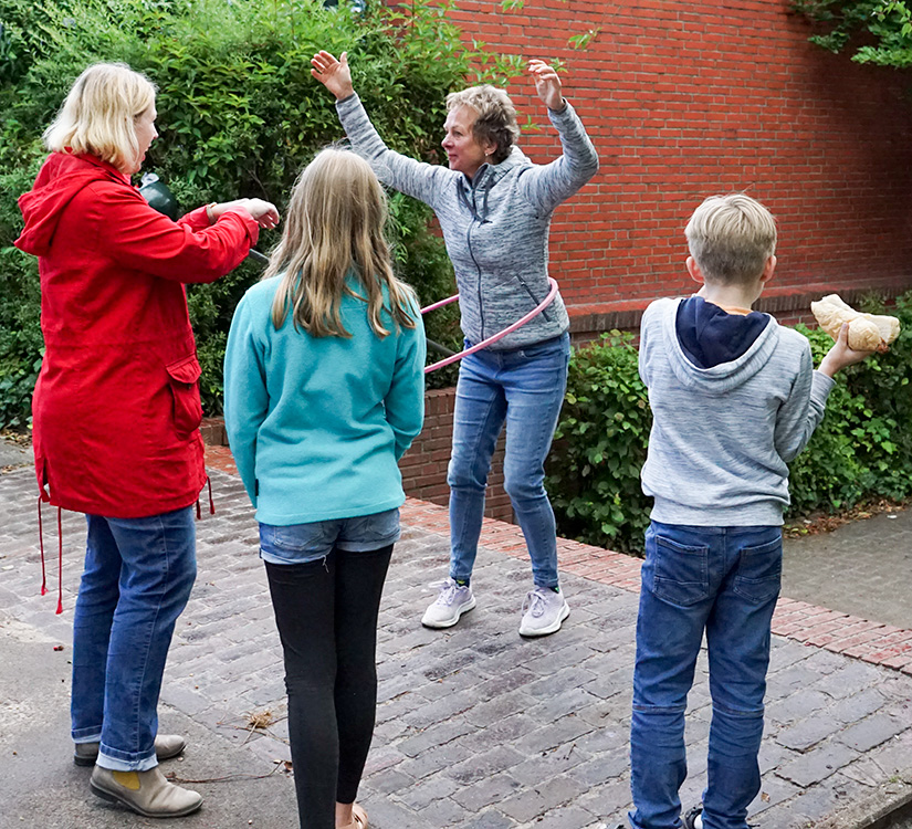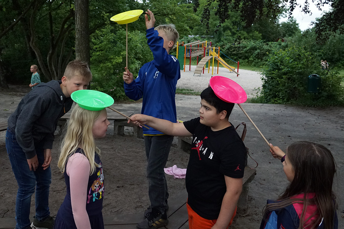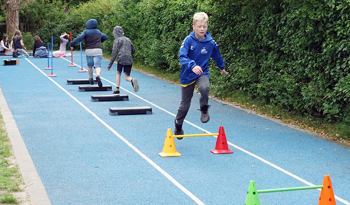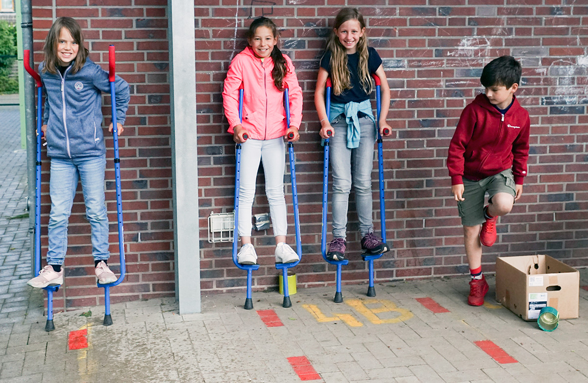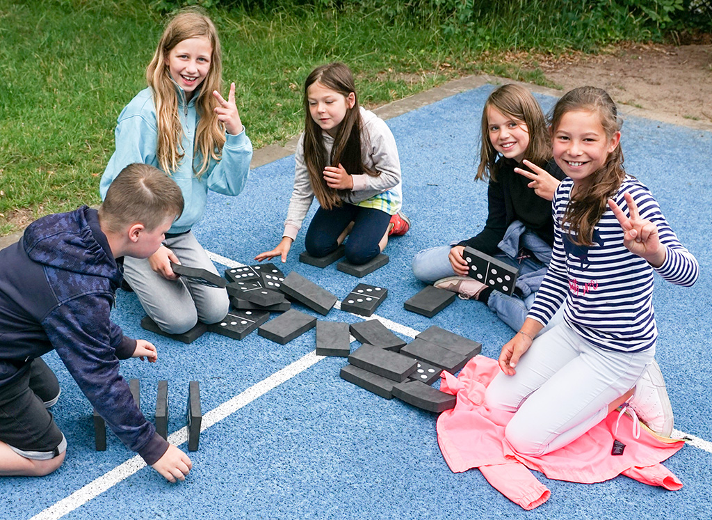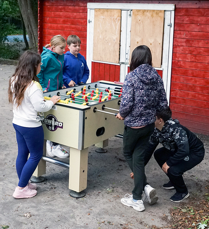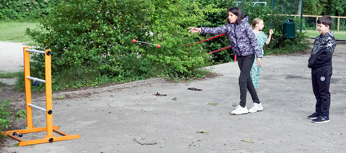 Während die Klassen 1 und 2 im Kino sind, spielen Klassen 3 und 4 auf dem Schulhof. |