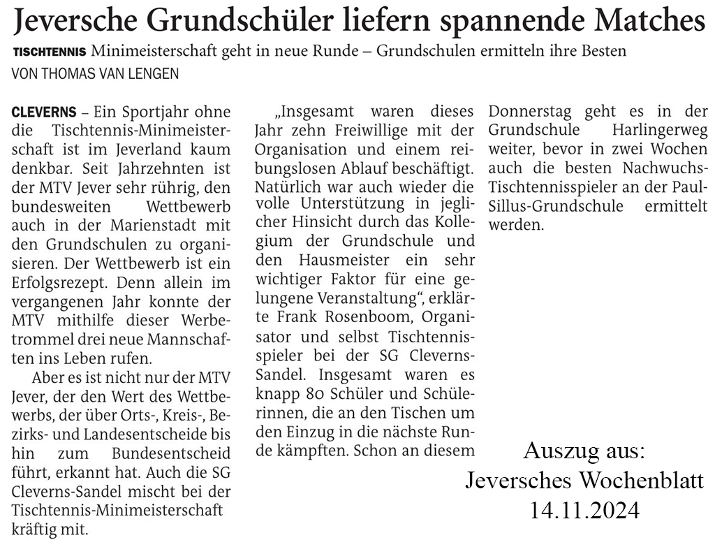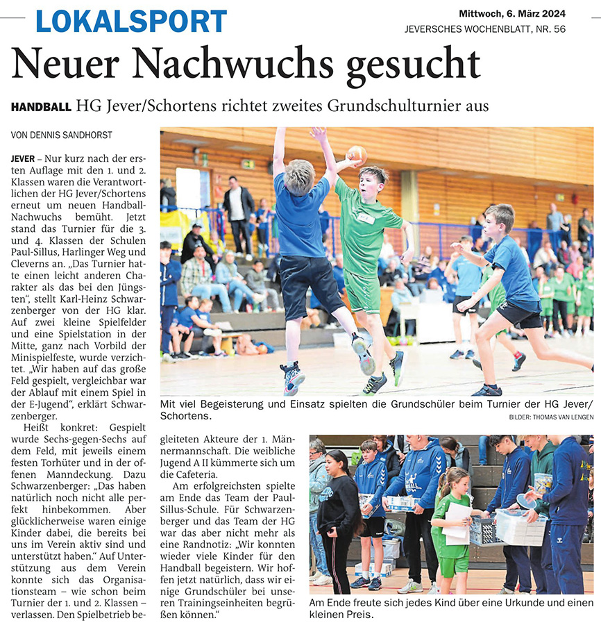 Handball-TurnierBericht Jeversches Wochenblatt 14.2.2024 |