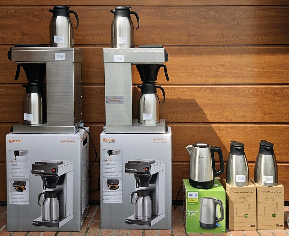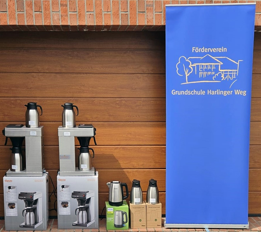 2 neue Kaffeemaschinen, 1 Wasserkocher, 4 Kannen und ein RollUp vom Förderverein!