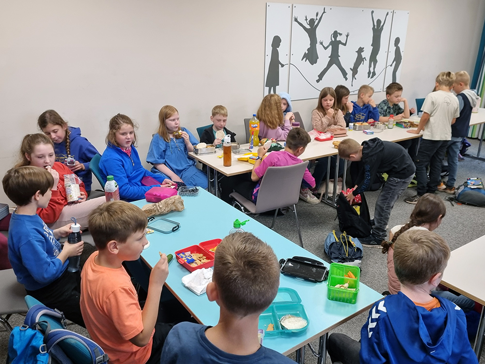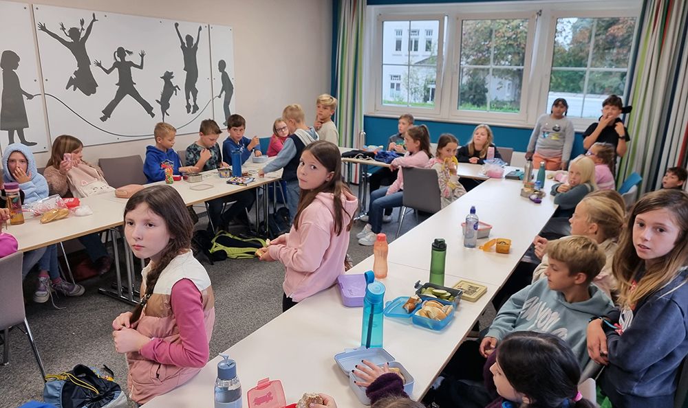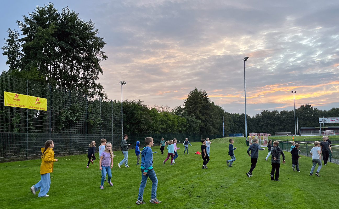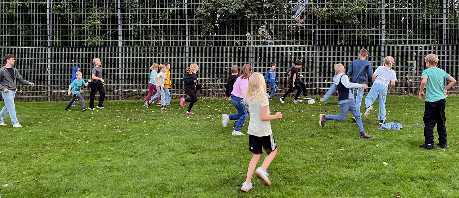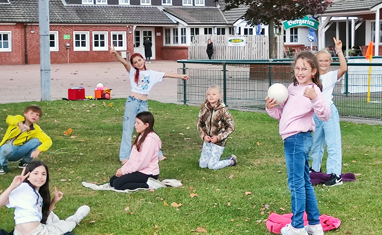 Während die Klasse 4b in der Mühle ist,spielt die 4a. |