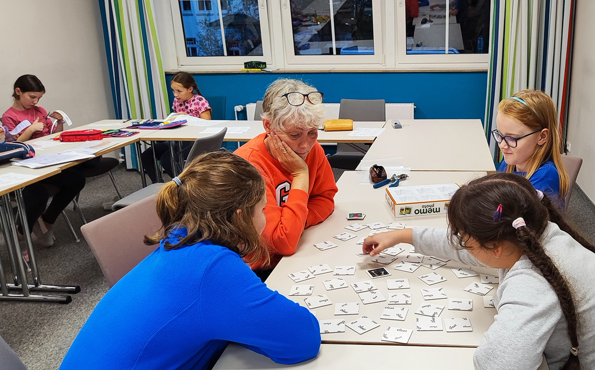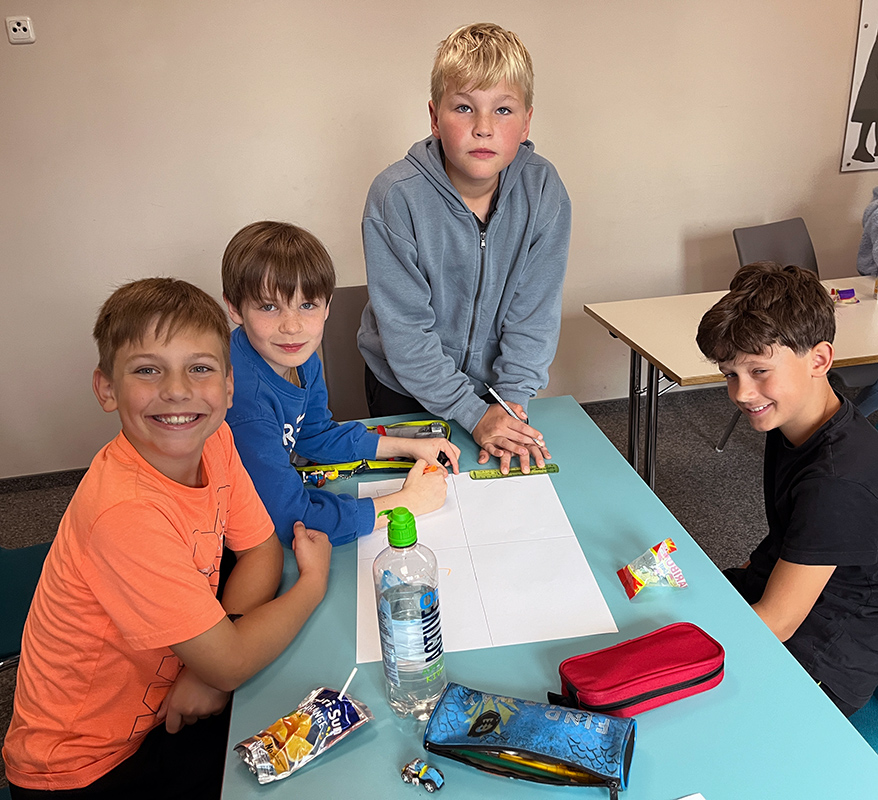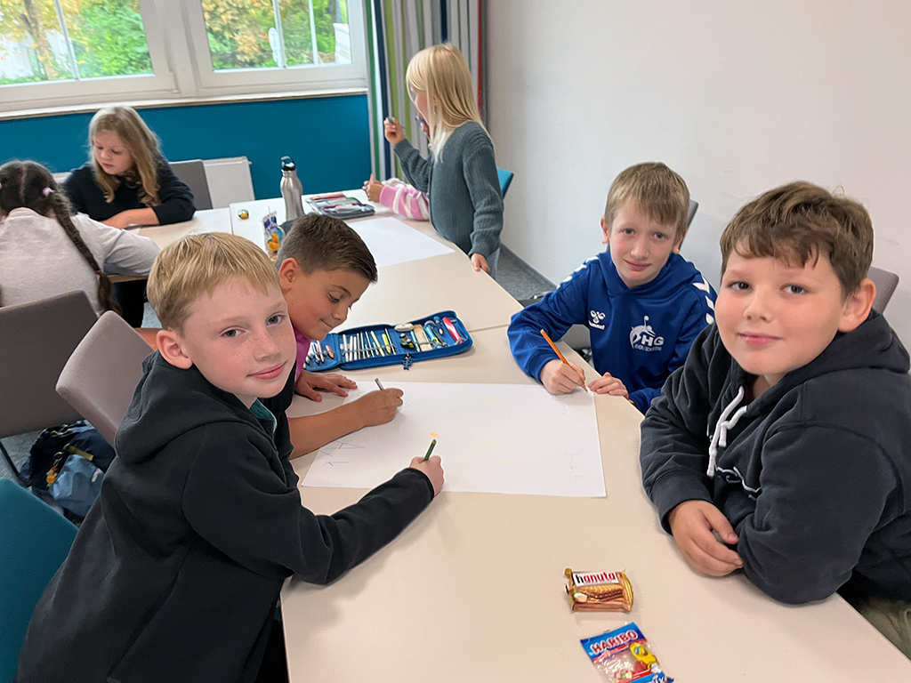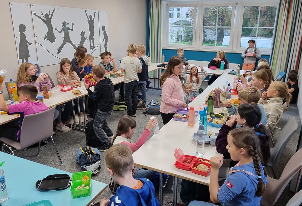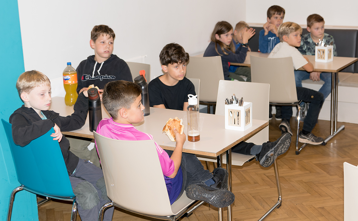 Während die Klasse 4b in der Mühle ist,spielt die 4a. |